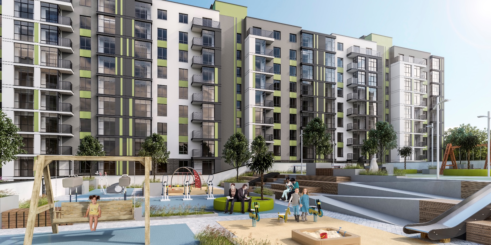 4 будинок перебуває на стадії здачі. Торговий центр, який будується поруч, планується здати у 3 кварталі наступного року.