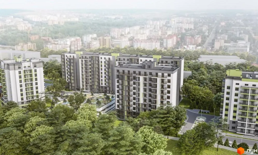 У житловому комплексі “Дизайн-Парк” представлені різноманітні типи житла: таунхауси, квартири в багатоповерхових будинках, а також окремі гаражі.